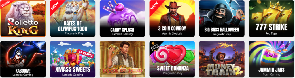 - Variedad de Juegos: Casino Rolletto ofrece una extensa selección de juegos, incluyendo tragamonedas, juegos de mesa, casino en vivo y apuestas deportivas, lo que garantiza una experiencia de juego diversa y entretenida para todos los gustos.